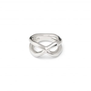 Metal alloy ring plated in sterling silver. Smooth finish, square shape at the ends