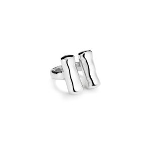 Sterling silver plated metal alloy ring with two vertical tubes at each end