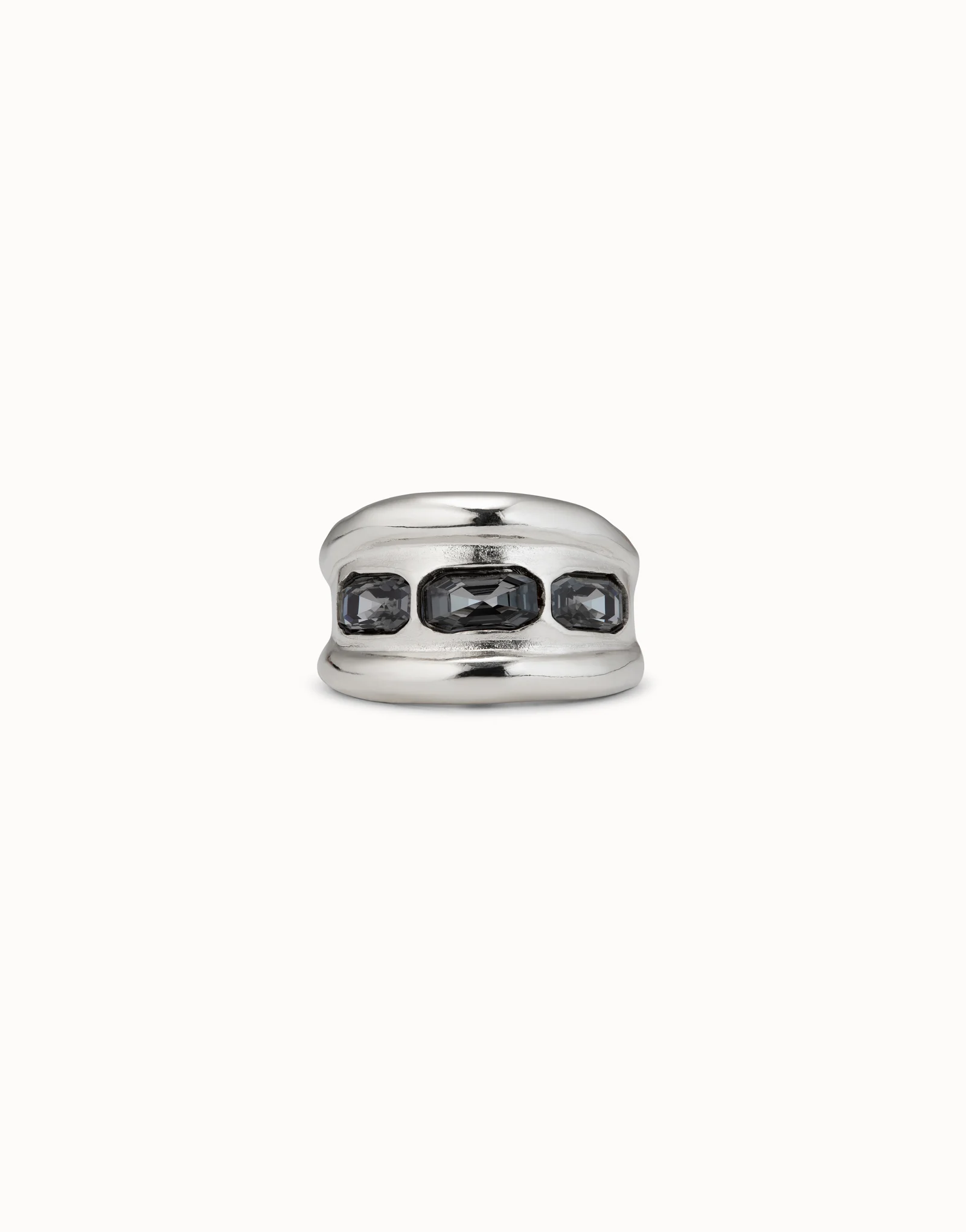 | The Bluemoon ring is a unique silver-plated metal design featuring three faceted gray crystals. Artisan-made in Spain, this exceptional piece of jewelry encapsulates UNOde50’s spirit so you can take it with you anywhere. Wear it with the rest of the pieces from the collection and shine bright wherever you go. |