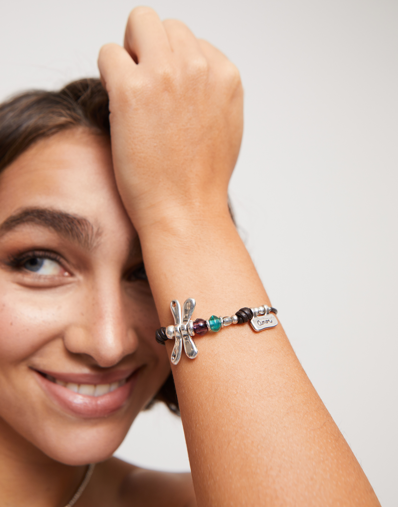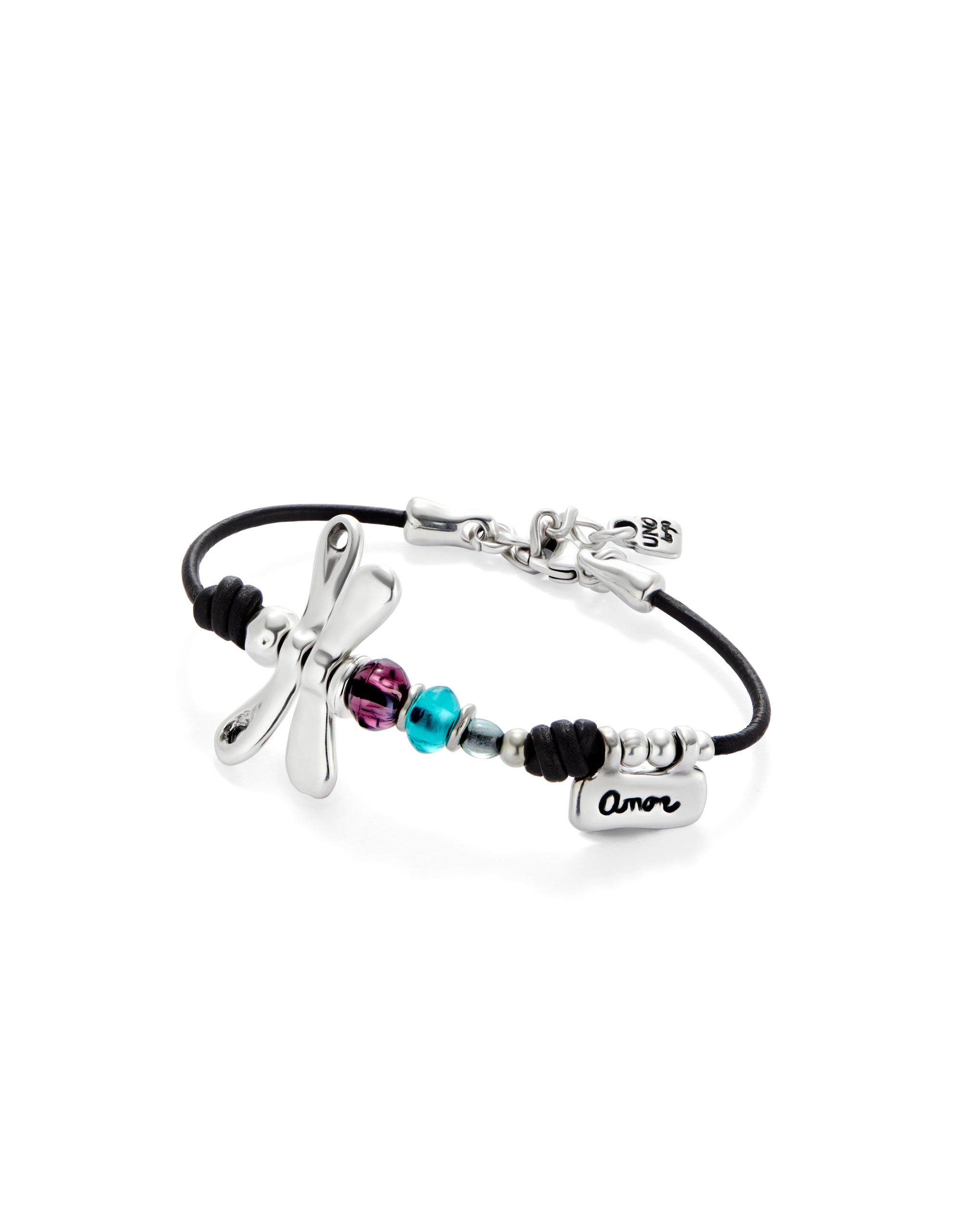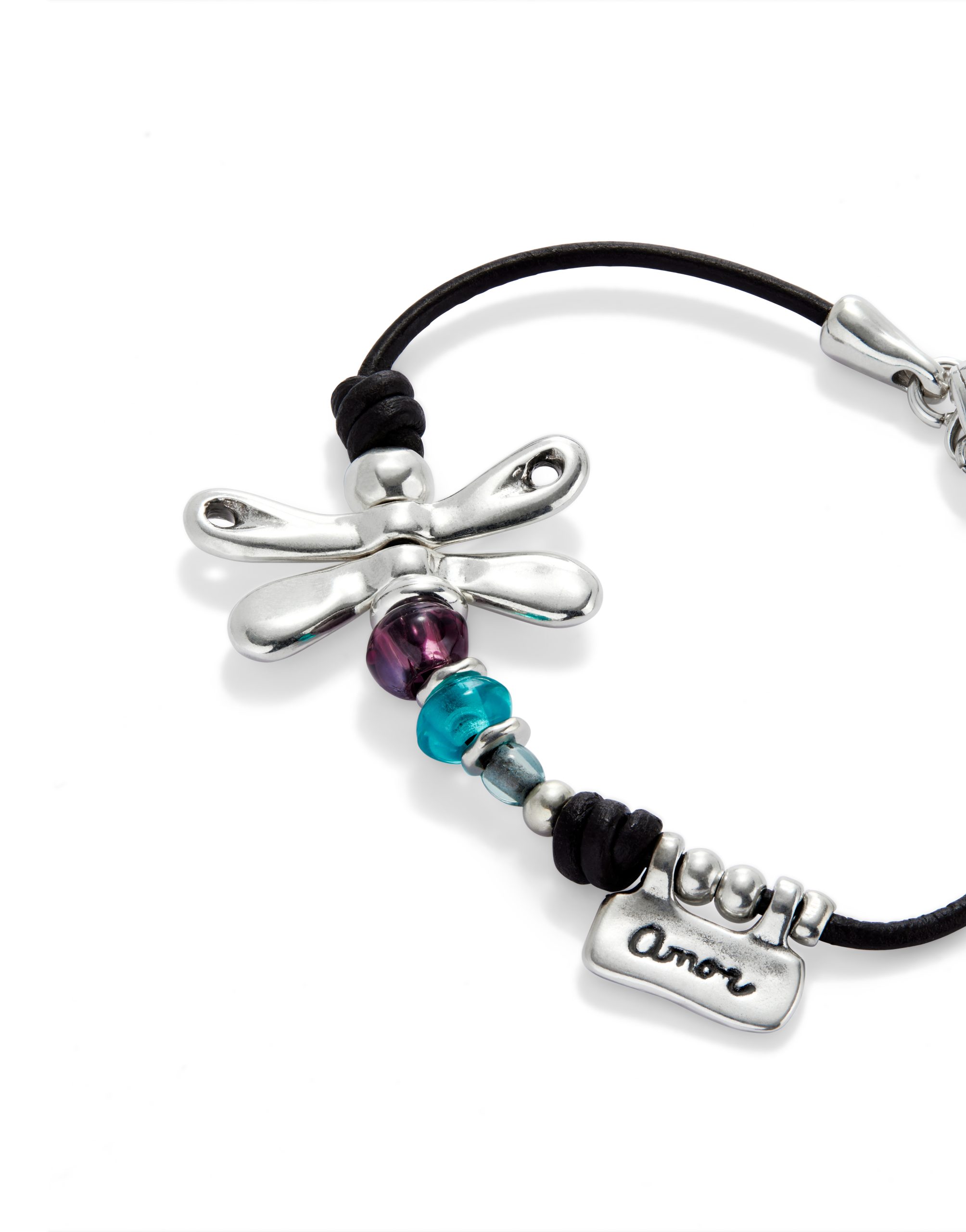 Bracelet with sterling silver-plated dragonfly and faceted handcrafted crystals with message ""love?. Made in Spain with a 100% handmade process.Pieces where the dragonfly becomes the center of attention of the season, authentic symbols of rebellion combined with leather, colored crystals or links."