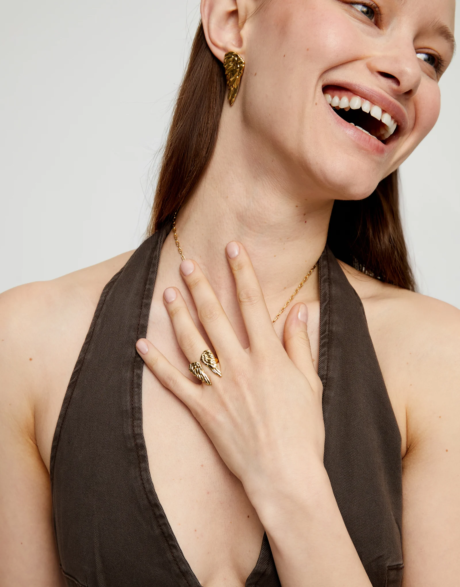 / Metal alloy ring plated in gold 18k in the shape of wings