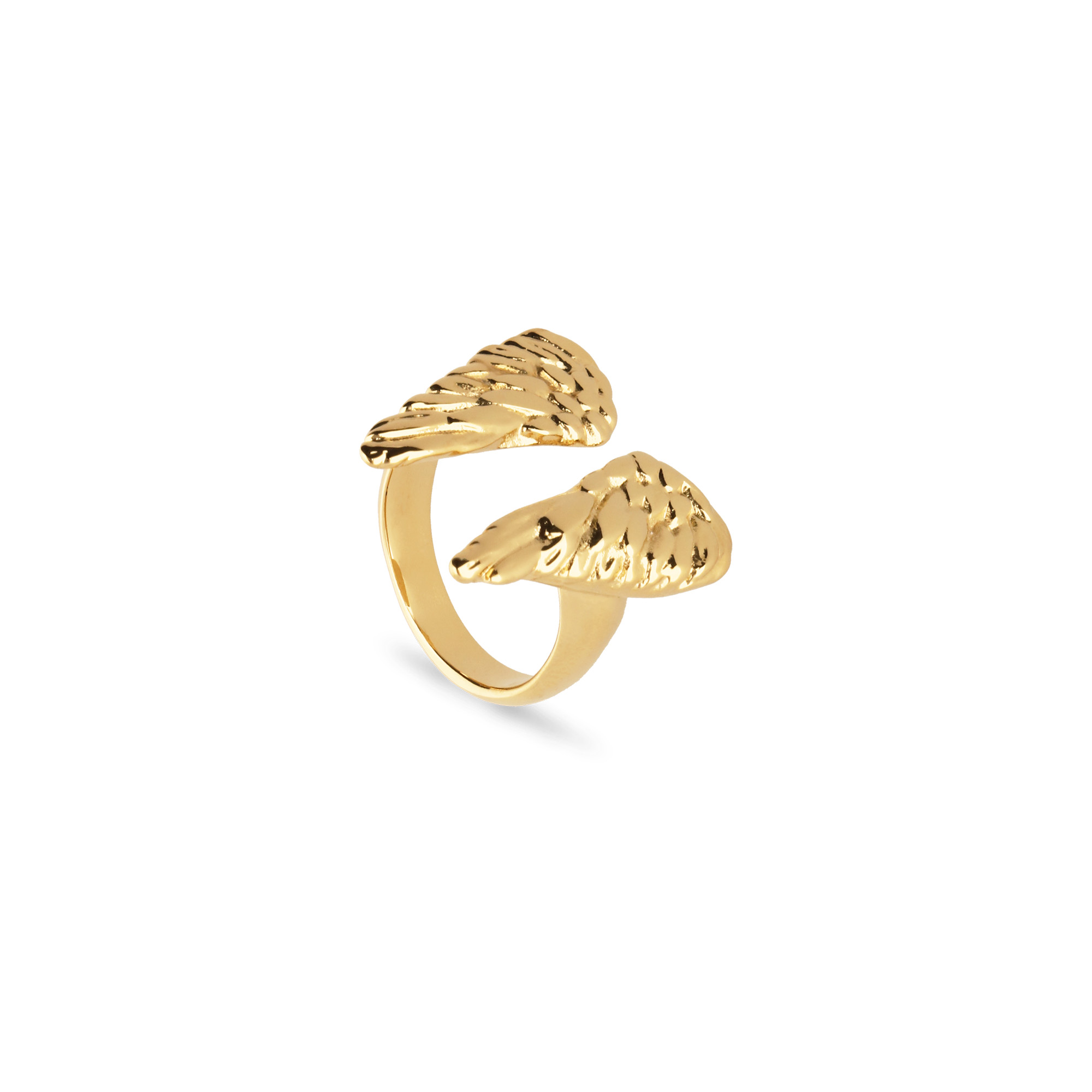 Metal alloy ring plated in gold 18k in the shape of wings