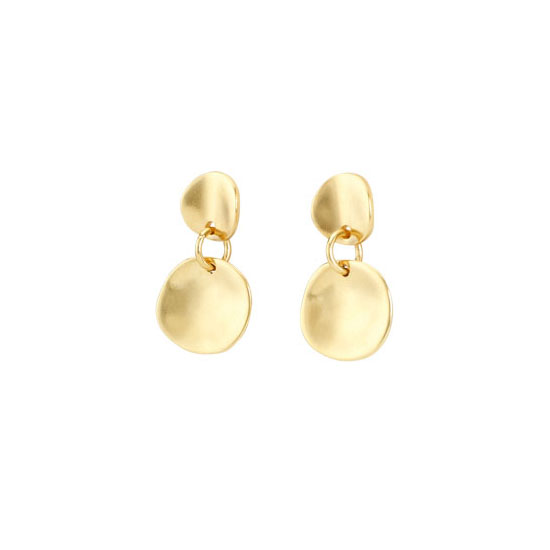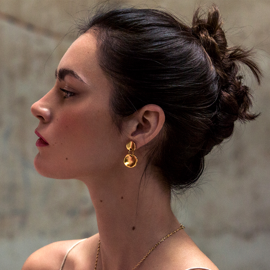 Sophisticated earrings featuring two uneven round shapes held together by a small hoop. Handmade in Spain through a 100% artisan process in UNOde50’s unique, distinctive style.