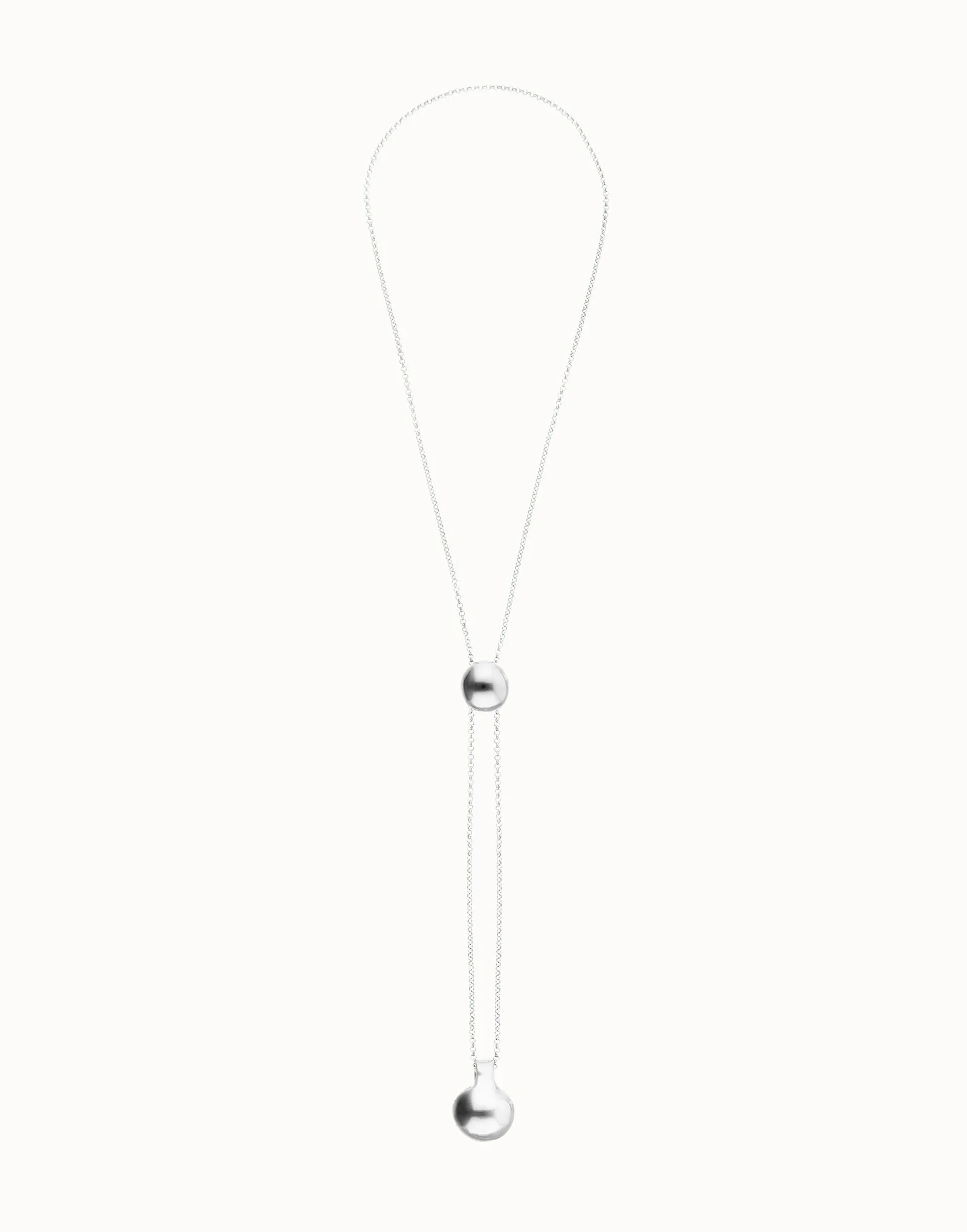 Sterling silver plated metal alloy necklace with height-adjustable chain and two hanging weights