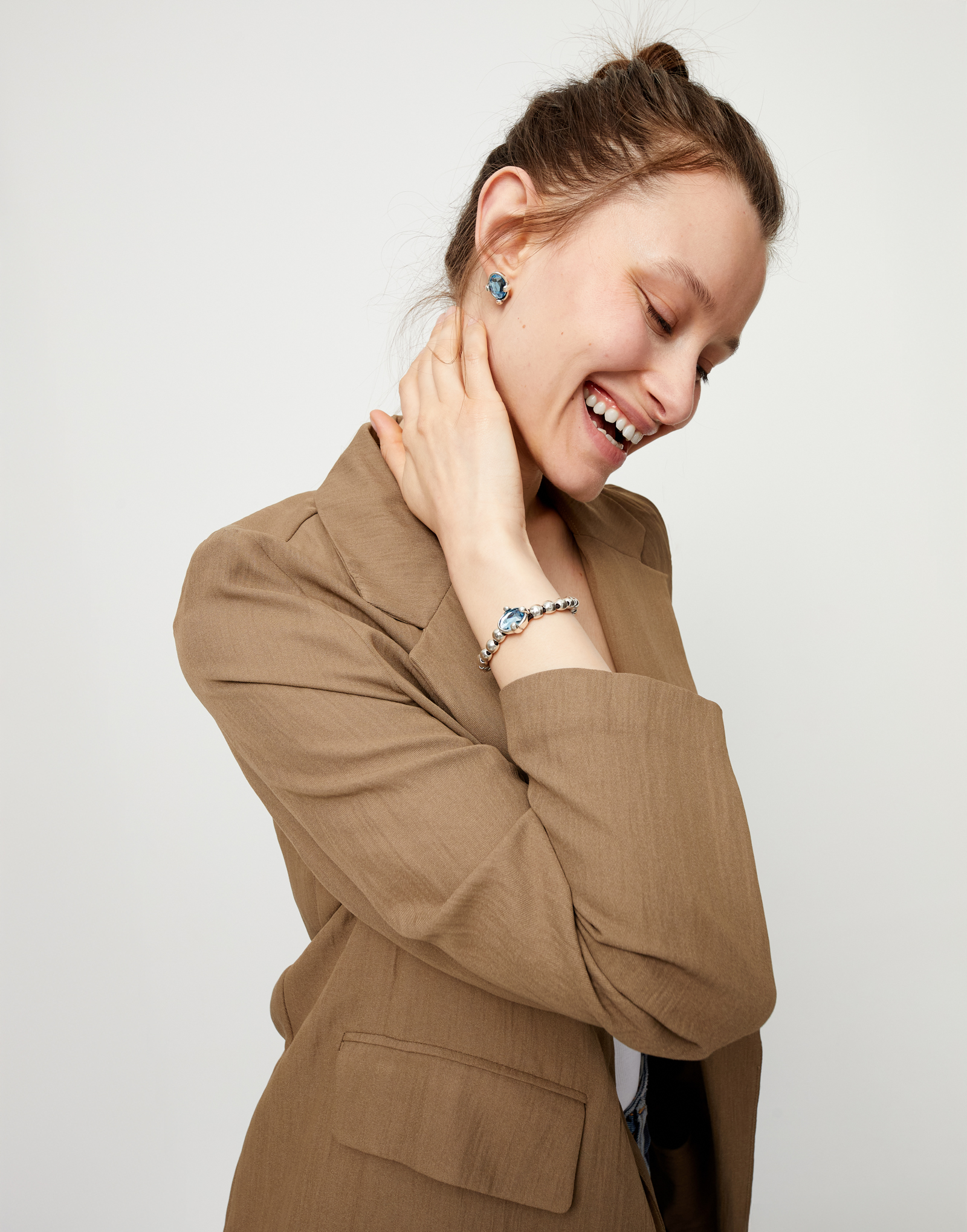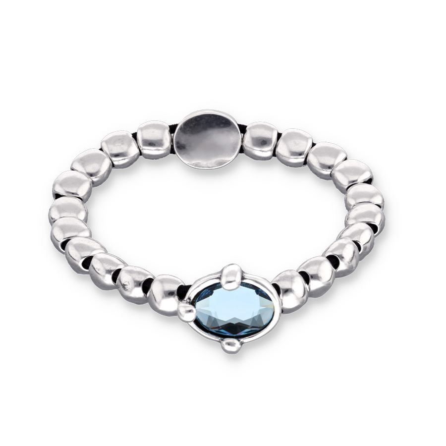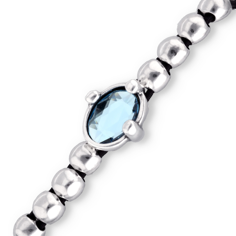 Sterling silver plated metal beaded bracelet with a blue faceted crystals and elastic string